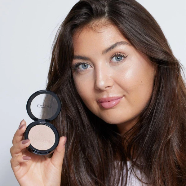 Application : Appliquez l’highlighter sur les parties du visage qui captent naturellement la lumière, telles que les pommettes, l’arc de cupidon, le bout du nez et le front. Utilisez un pinceau adapté comme le pinceau n°33 de Gosh ou vos doigts pour appliquer l’highlighter.